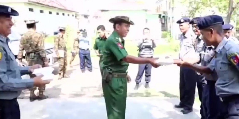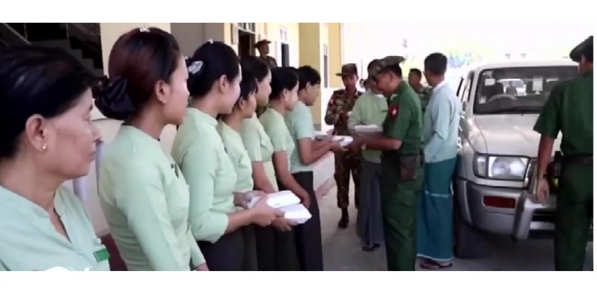 The Myanmar Licensed Contractors Association and donors donated rice boxes and food items to the local military personnel, Myanmar Police Force members, fire brigade members and departmental officials who are carrying out reconstructions works in Sittwe and Mrauk-U townships of Rakhine state. Lt. Gen Phone Myat from the Office of the Commander in Chief (Army) and other officials viewed the donation activities.