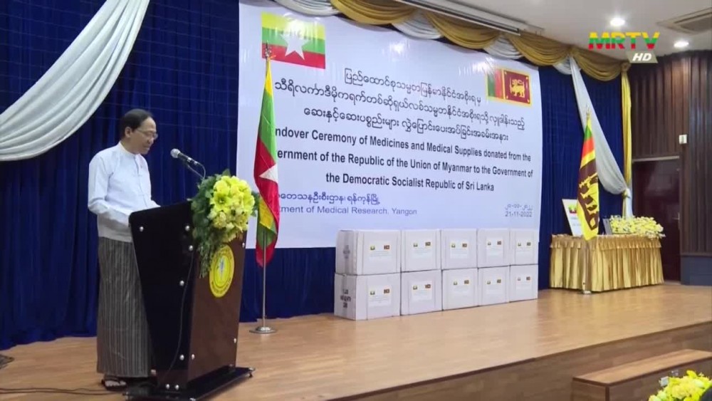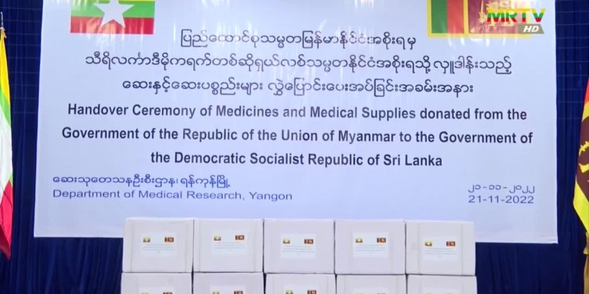 With the guidance of the State Administration Council, the medicines and medical supplies such as household medicines, rabies vaccine, antibiotic, chronic disease medications and Covid-19 prevention and control protective equipment contributed to Sri Lanka were jointly donated by the Ministry of Health and Myanmar Pharmaceutical and Medical Device Manufacturer Association and the donated amount is over 1.48 million USD.