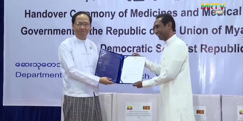 Dr. Myat Wanna Soe, Director General, Department of Medical Services, MOH, said " The Government of Sri Lanka made a request to the Government of Myanmar for medicines and medical supplies. So, over 60 kinds of medicines and medical supplies from the hospitals under the Department of Medical Services and the medicines from the Department of Public Health were donated to Sri Lanka."