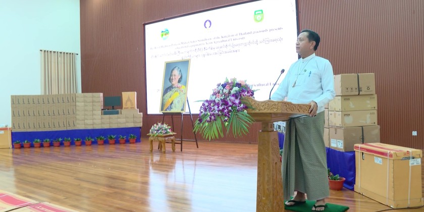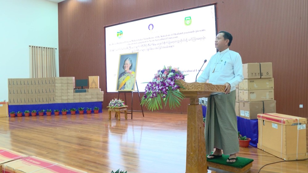 The ceremony for the donation of teaching and office equipment from the Royal Princess Maha Chakri Sirindhorn Project of Thailand was held on Thursday afternoon at the Yezin Agricultural University.