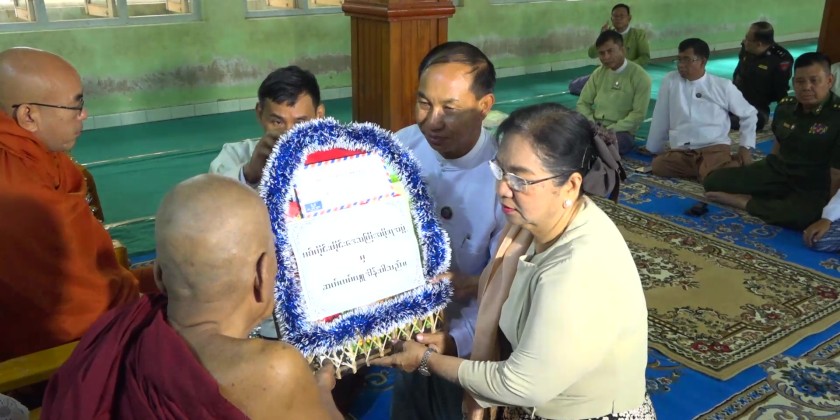 Subsequently, the Region Chief Minister and relevant officials visited the Myoma Gatt Monastery in Yonegyi Ward and the Maha Gandhayon Monastery in Myawaddy Ward, both in Monywa. There, they also offered rice, oil, salt, beans, medicine, and other donated items, and the Region Chief Minister again presented matters concerning religious affairs.