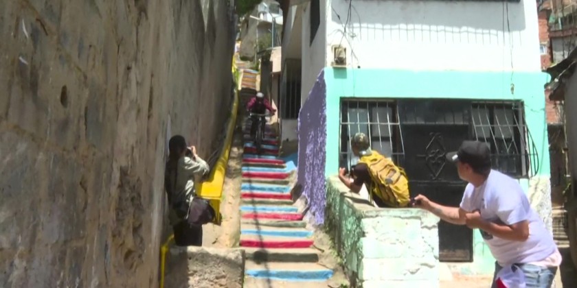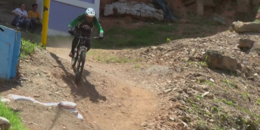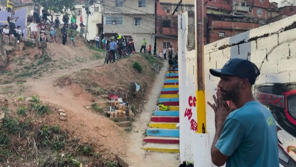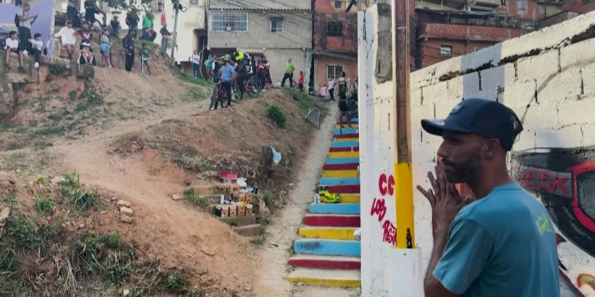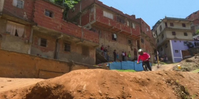 Cyclists speed through the tangled alleys and staircases of one of Latin America's largest neighborhood complexes, and Venezuela's biggest. In Petare, home to 600,000 people and long plagued by gang violence, a downhill mountain bike race hopes initiatives like this will help the neighborhood shake off its reputation as a "dangerous" place. "They want to show the good and beautiful things happening here in Petare," said event organizer Eliud Baudin.