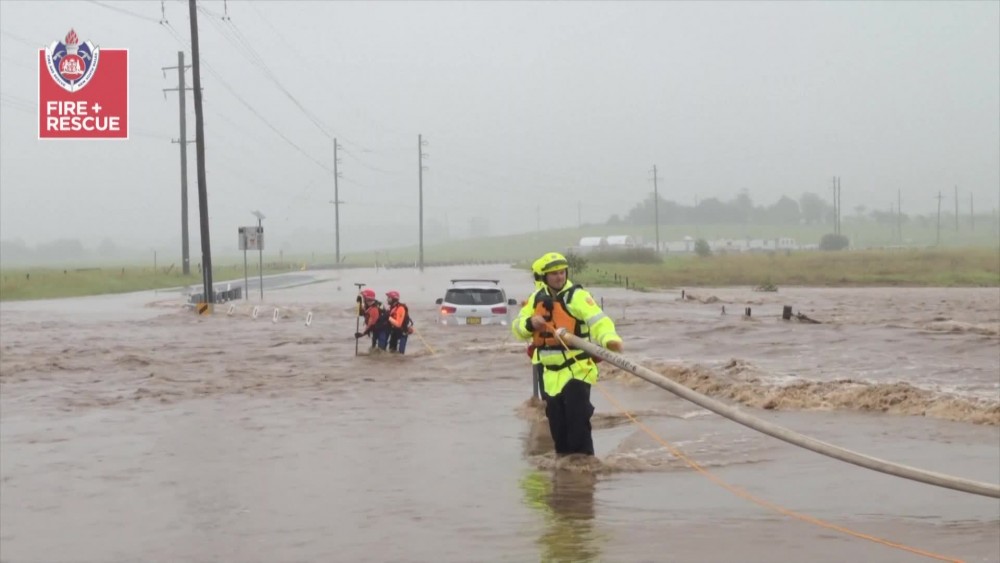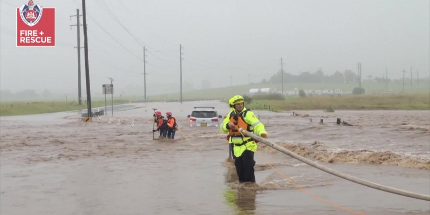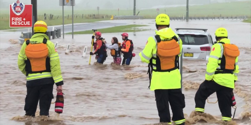 Firefighters in New South Wales pulled off a dramatic rescue in Wollongong, a city south of Sydney, after they were called there when a motorist became stranded in rushing flood water on April 6.