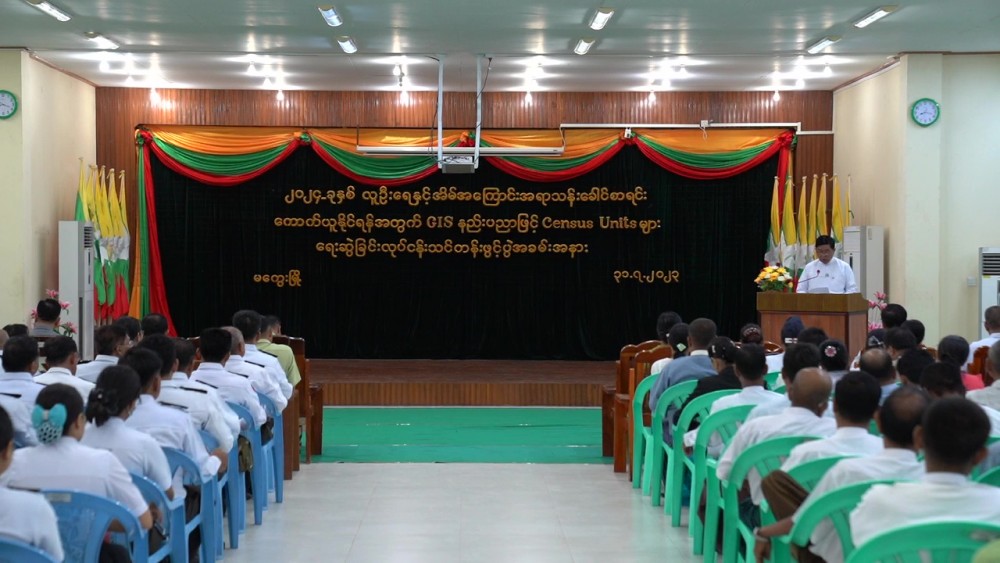 Chairman of Magway Region’s 2024 Population and Household Census Steering Committee, Magway Region Chief Minister Thiri Pyan Chi U Tint Lwin and committee members attended the the opening ceremony of Census Units drawing course with the use of GIS technology for Magway Region’s 2023 population and household census on Monday.