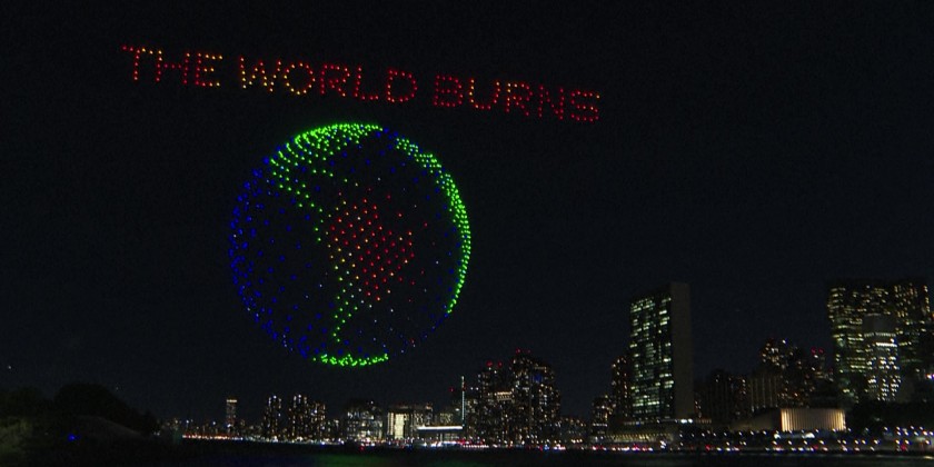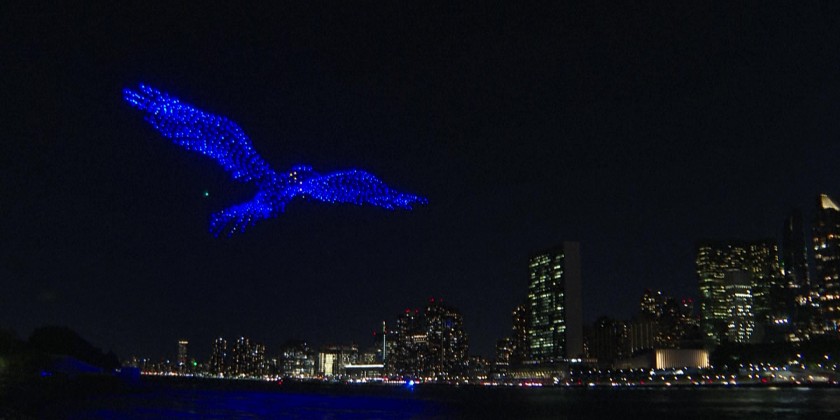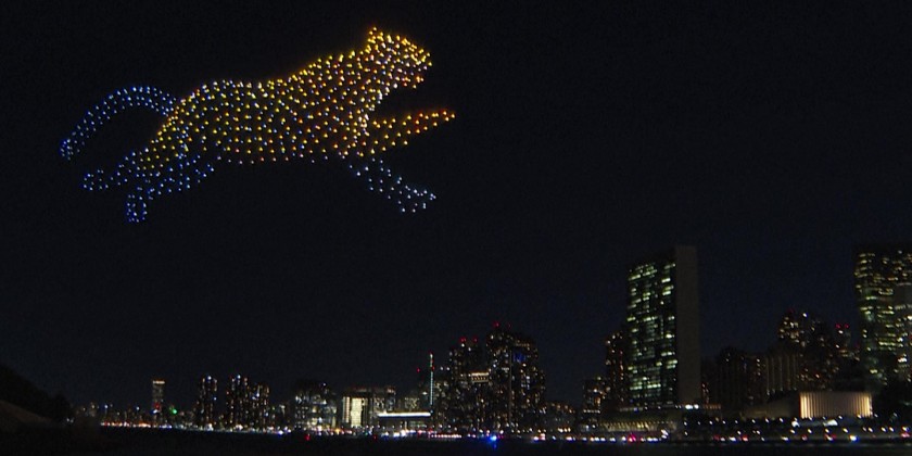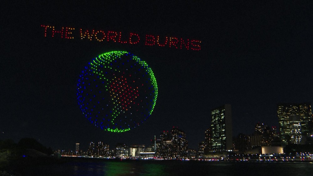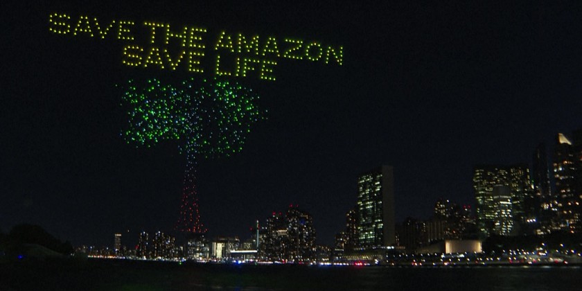 A thousand drones light up the New York skyline forming images of the iconic Amazonian wildlife to raise awareness of the climate crisis, ahead of a UN summit on sustainable development and the city's climate week.