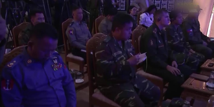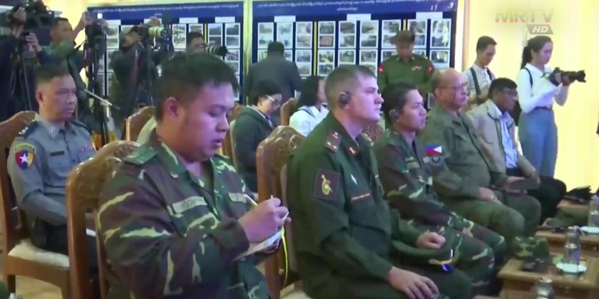 The briefing was led by Leader of Information Team of the National Defence and Security Council Deputy Minister for Information Maj-Gen Zaw Min Tun and Chief of Myanmar Police Force Police Lt-Gen Win Zaw Moe, with representatives from government ministries, foreign diplomats, the UN Office on Drugs and Crime (UNODC), and local and international media attending.