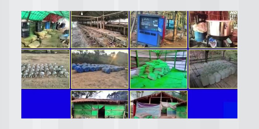 Later, the Information Team Leader, the Chief of Myanmar Police Force, and officials accompanied diplomats and local and international media representatives went to the newly discovered drug manufacturing sites and viewed the temporary structures, chemical substances, and related equipment used in the production of narcotic drugs at each location.