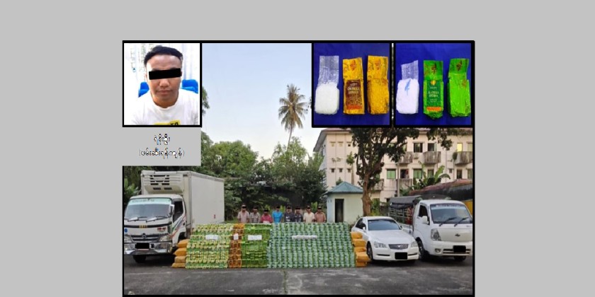 According to the Myanmar Police Force, a drug trafficking cartel planning to transport drugs to Malaysian and Thai waters via sea routes from North Okkalapa Township was uncovered, and over 133 billion kyats worth of drugs, including 1.58 tons of Ice (methamphetamine) and over 1.8 tons of ketamine, were seized along with the arrests.