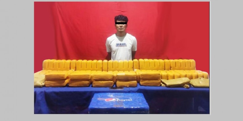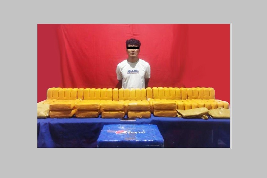 A combined team including members of Anti-narcotic police unit arrested Nyein Chan Aung @ Tue Tue together with 150,000 stimulant tablets near Phawtkan market, Insein Township, Yangon Region on 6th June.