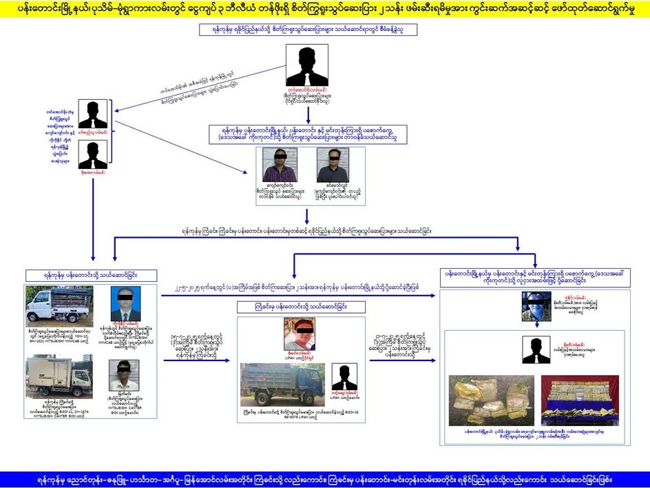 The tablets were temporarily stored in Yangon and then transported through Kyankhin and Padaung to be delivered to Rakhine. Vehicles used in the smuggling were also confiscated. Legal action is being taken, and further investigations are underway to capture additional suspects connected to the case.