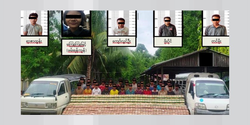 On 7th August, a combined team comprised of security force members conducted a search on Mazda Bongo vehicle and I Zone vehicle near Kin ကင်း Village and confiscated 171.6 kilos of heroin along with 22 suspects. Actions have been taken against the suspects in line with the laws and further investigations are underway to expose the rest of the suspects who haven’t been charged yet.
