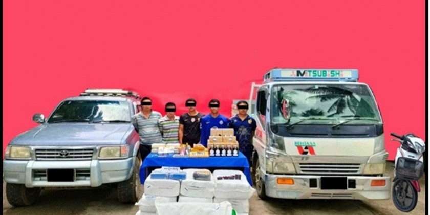 On the evening of that day, police confiscated 48,000 stimulant tablets, 20-liter of smell liquid, 100 moulds for pressing tablets, 50 moulding heads on board of a Toyota sport car near KyaPha village-tract in Tachileik township. In connecting that case, police searched auto cash service in HsanSai ward in Tachileik and seized 1.5 kilos of raw opium, 6.5 liters of smell liquid, W and Y brand blocks, a canter type vehicle and a motorcycle together with culprits.