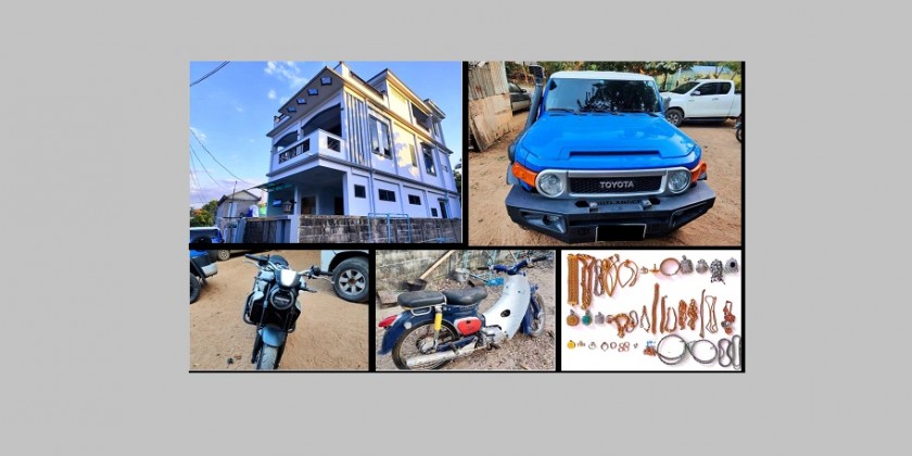 Moreover, a Toyota FJ Cruiser, 2 motorcycles and over 7.9 million kyats, 6,000 Thai baht, 39 various kinds of gold accessories (valued at about 93.4 million kyats) were seized while searching the resident of the suspects in Dawei. Investigation is underway to reveal the chain of offenders and legal actions have been taken against the suspects in line with the Narcotic Drugs And Psychotropic Substances Law.