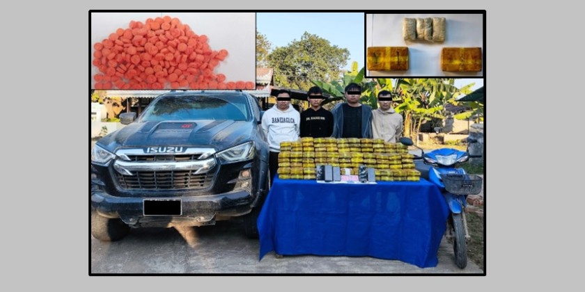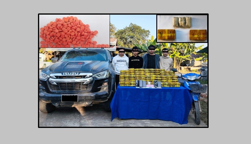The interrogation led to the arrest of two more suspects in Tachileik and seizure of a motorcycle. The investigation revealed that the seized drug are transported from Mong Pyin to Myanmar-Thai Border in Tachileik. The case has been filed a lawsuit in line with the law.