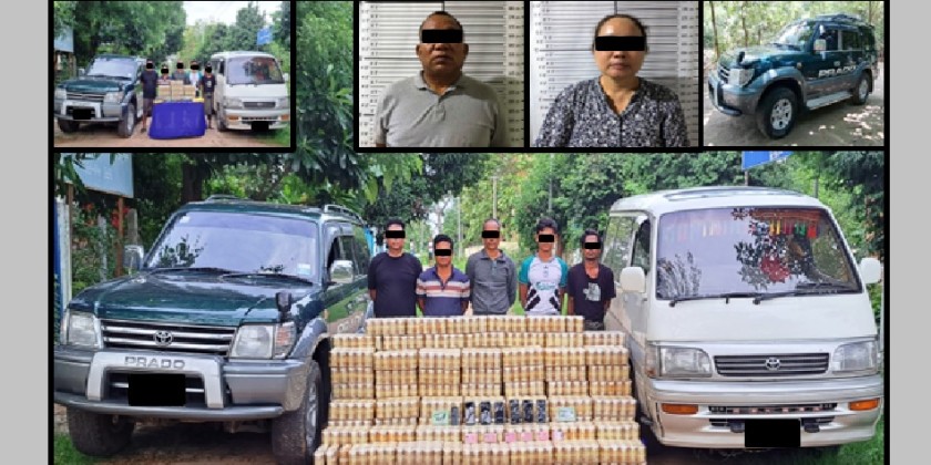 They discovered 500,000 stimulant tablets while transferring from the Toyota Prado to I-Zone vehicle, and arrested four suspects. The investigation led to the arrest of one more suspects in Kyaung Gyi Oh Tan Ward in Pyay Township, along with over 420,000 stimulant tablets.
