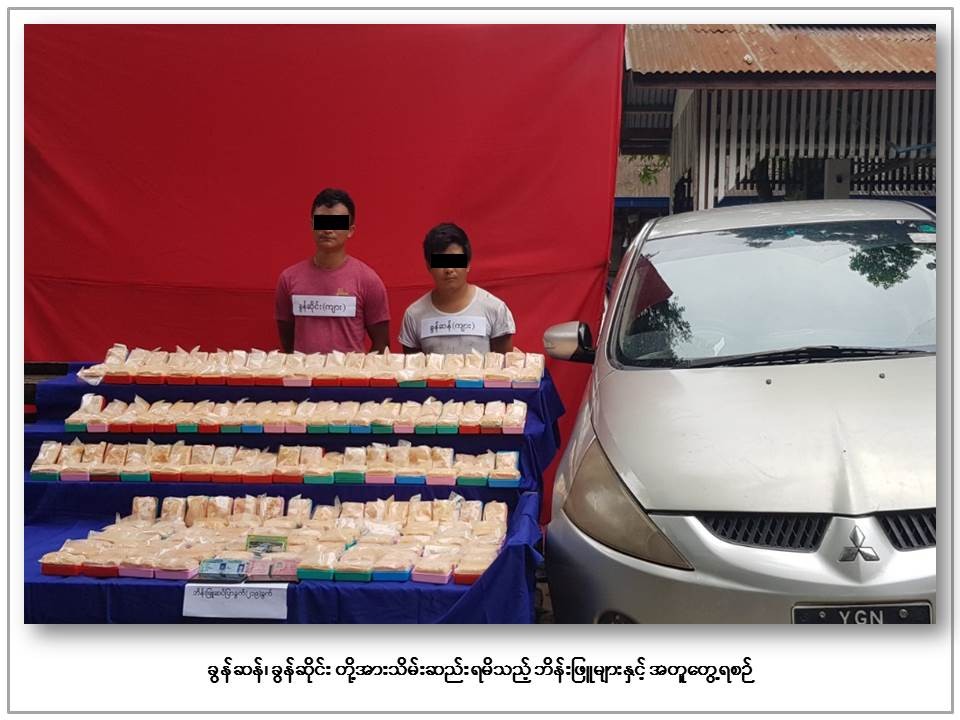 Heroin and ‘ice’ were seized in Waingmaw and Yebyu townships, according to the Ministry of Home Affairs. 2.409 kilograms of heroin worth over 190 million kyats were seized in Waingmaw Township area of Kachin State – 2 men were arrested along with the seizure.