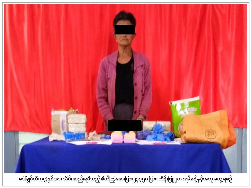 Also, 23.76 kilograms of heroin were seized in Maisat Township area of Shan State – a woman was arrested for the case.