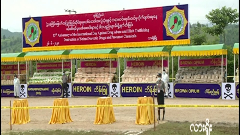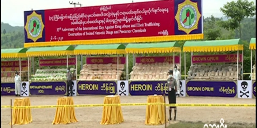 The Chief Minister of Mandalay Region Dr. Zaw Myint Maung and officials attended the event. The seized drugs worth over 40 million USD equivalents to 59.13 billion Kyats were set on fire during the event…The International Day Against Drug Abuse and Illicit Trafficking which falls on 26th June, the event of the destroying seized drugs, precursors chemicals and related materials seized in Shan State and Kayah State was conducted at the AhWayYar ground, Taunggyi Township, Shan State in line with the instructions regarding Covid-19 preventive measures issued by the Ministry of Health and Sports.
