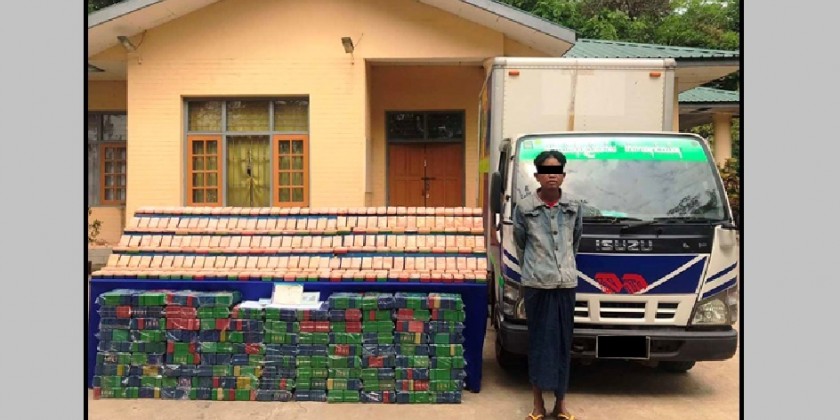 Acting on tip-off, a combined team consisting of members of the Anti-illegal Drugs Police Force searched a ISUZU container box vehicle driven by Myo Min near the Oriental Toll-Gate on Lashio-Mandalay Road in NaungCho Township at 3 p.m. on 27th March and seized 13.2 kilos of heroin worth 198 million Kyats in current price.