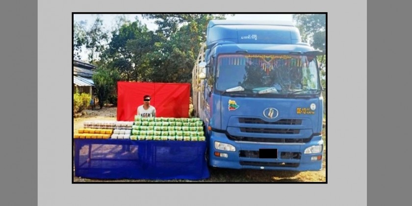 A combined team consisting of members of the Anti-Drugs Police Force searched a 12-wheel Nissan diesel vehicle driven from Karli to Mongpyin by Sai Paung Nwam Kham (a) Kham Han Sint at the Takaw Bridge Combined Checkpoint on the Taunggyi-Tachilek road in Kunhing Township, on 26 February.