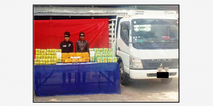 Acting on a tip-off, the combined forces including the members of Anti-Narcotics Task Force inspected a FUSO six-wheeler on Bayintnaung Street, Lammataw ward, Taunggyi Township, at 4:00 p.m. on November 22, driven by Aung Kyaw Min (a) Andrew accompanied by Sai Oo Maung (a) Sai Maung.