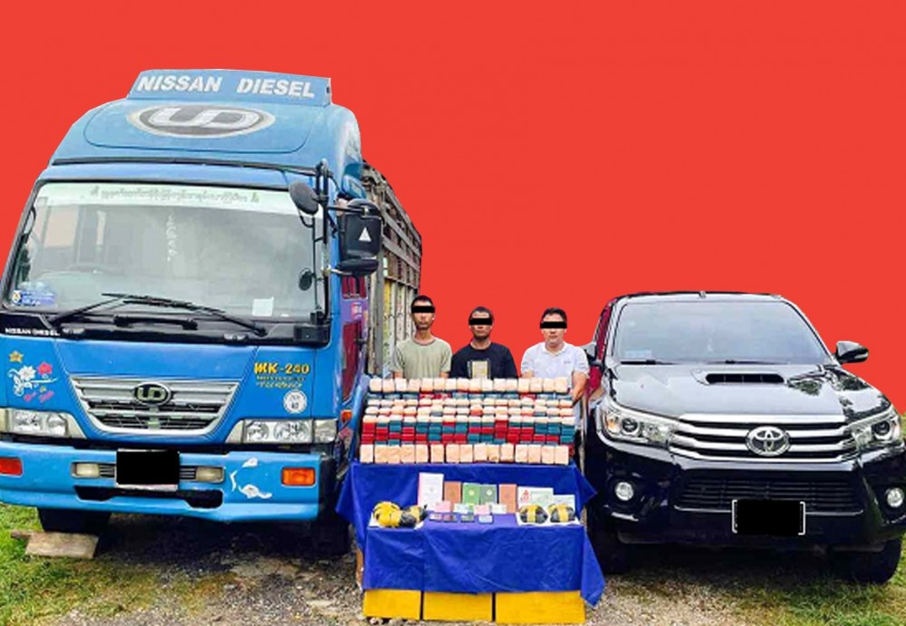 According to the investigation, at 7 pm on the same day, trafficker Wai Lwin Oo was arrested with a Toyota Hilux car there. The suspects are being prosecuted under the Narcotic Drugs and Psychotropic Substances Law, the Myanmar Police Force stated.