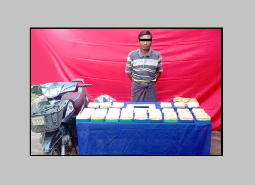 Illegal drugs were seized in Kachin State, Kayin State and Shan State. In Mohnyin Township area, Hpa-An Township and Namsan Township area of the states, 330 grams of heroin and over 63,000 stimulant tablets were seized.
