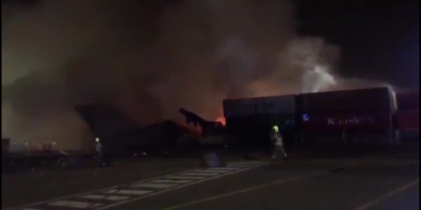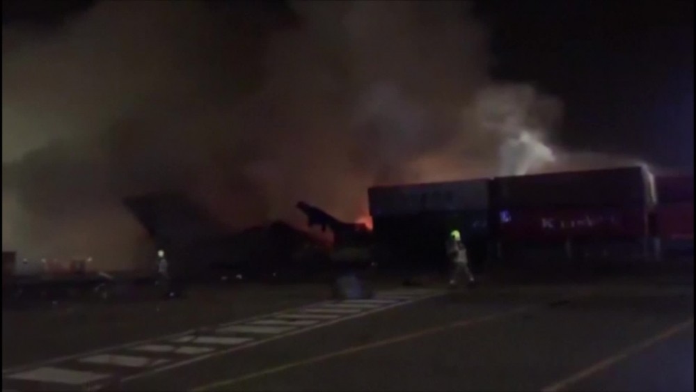 A container ship anchored in Dubai caught fire late Wednesday, authorities said and it caused an explosion that sent tremors across the commercial hub of the United Arab Emirates. The combustion unleashed a shock wave through the city, shaking buildings and windows in neighborhoods as far as 25 kilometers away from the port.