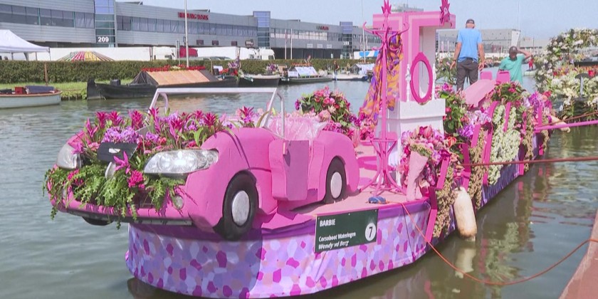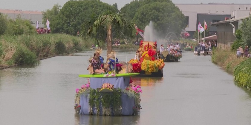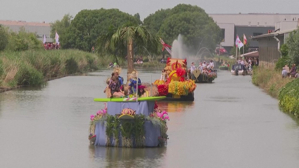 Hothouse producers in the Netherlands stage an annual parade of some 45 boats decorated with thousands of flowers in an annual showcase to promote products from the Westland, south Holland.