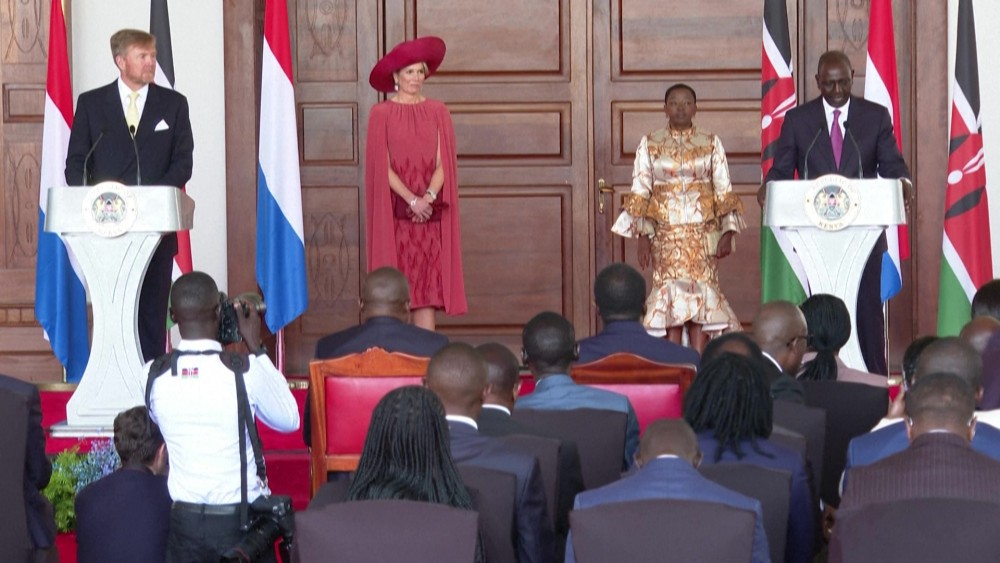 On a three-day state visit to Kenya, Dutch King Willem-Alexander brings up the issue of human rights following a meeting with President William Ruto in Nairobi.