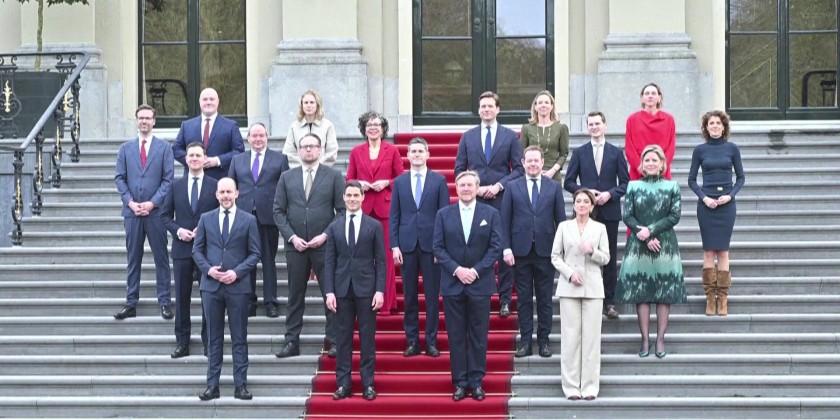 Dutch Prime Minister Rob Jetten took an official photo with his ministers and King Willem-Alexander as the new government is officially sworn in.