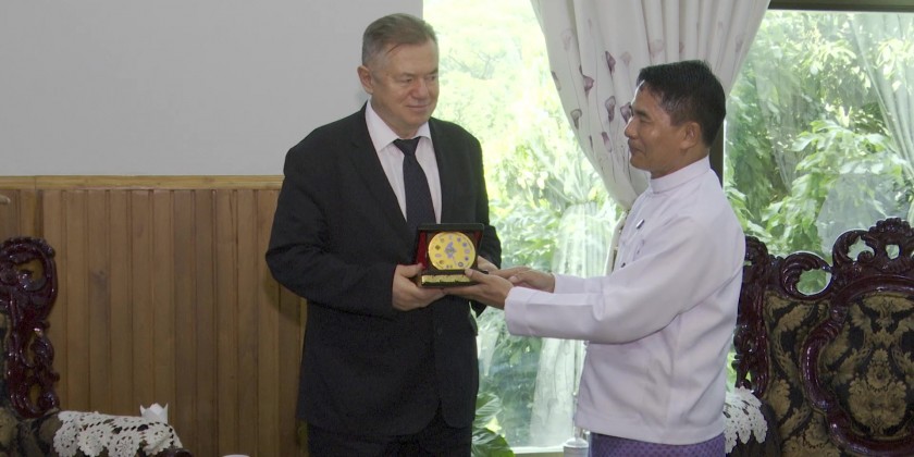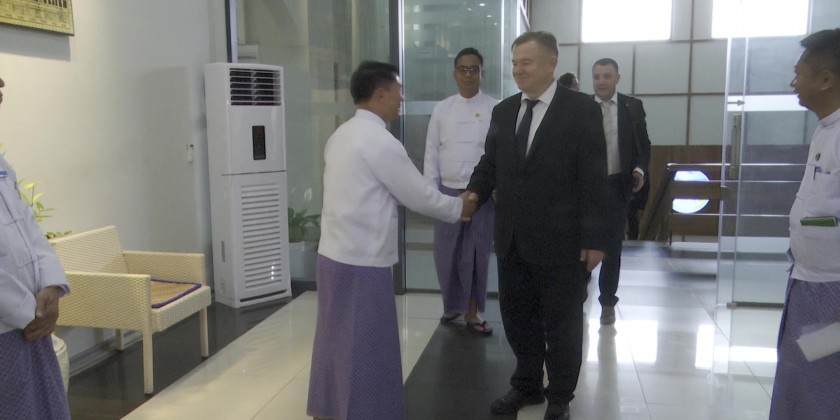 Union Minister for Agriculture, Livestock and Irrigation U Min Naung received a delegation led by H.E. Mr. Sergei Glazzev, Member of the Board – Minister in charge of Integration and Macroeconomics of the Eurasian Economic Commission at the Ministry in the morning on 8th April.