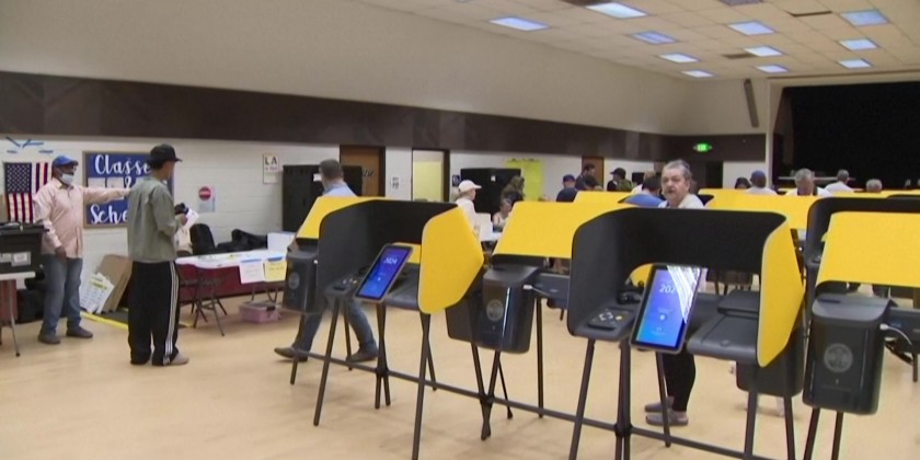 Early in-person voting begins in Los Angeles, California, allowing voters to cast early machine votes for the Presidential Election.