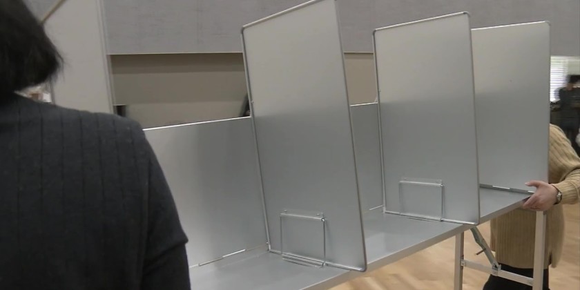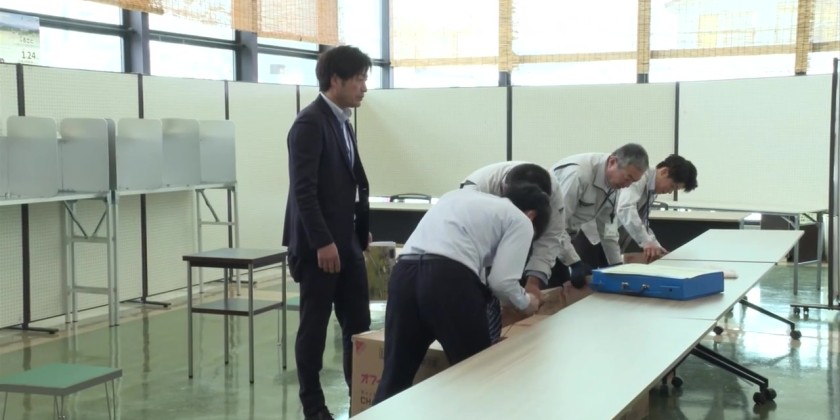 At this municipal facility in Fukushima City, around 10 temporary workers assembled the writing stands, ballot boxes and other equipment, placing them in the prescribed positions. However, in some places the preparations are being affected by the short run-up time to the election.