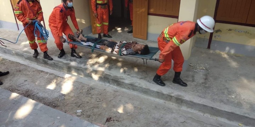The drill included search and rescue operation using breathing apparatus and first aid. The Fire Services Department in Khin-U Township will continue its earthquake drill, Information and Public Relations Department reported.