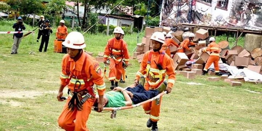 Tachileik Township Fire Services Department led the earthquake response, search and rescue exercise in the township area. Township Fire Services Department personnel, members of social organizations, district and township level departmental officials and students participated in the earthquake preparedness in the eastern Shan State.