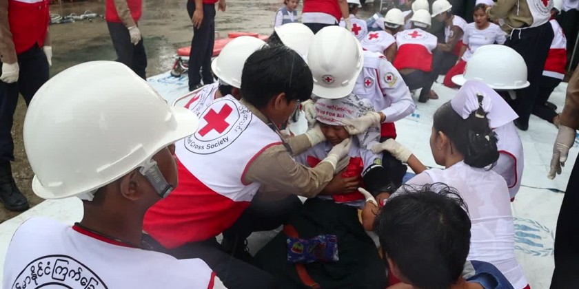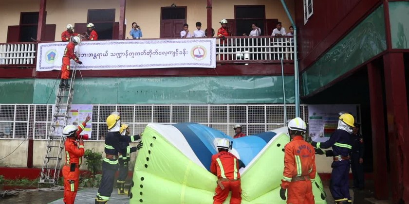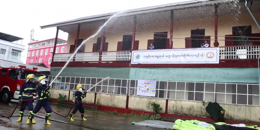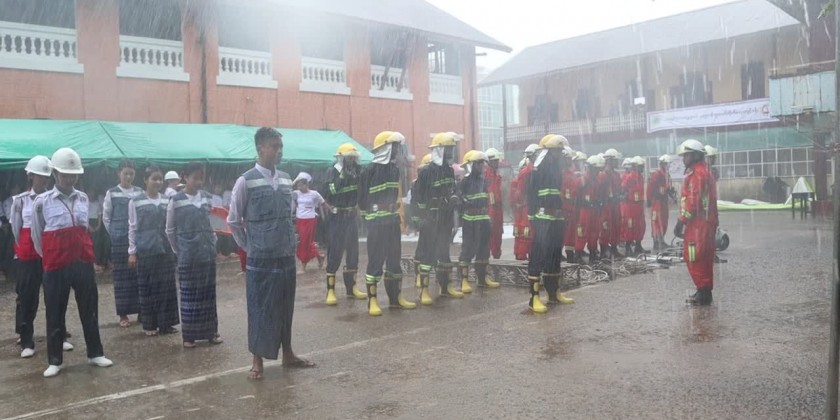 The drill on Wednesday was participated by the Region Disaster Management Department, Red Cross Society, Fire Brigade members, teachers and students. The Region Chief Minister U Myat Ko and departmental officials oversaw the drill.