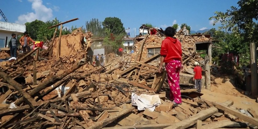 Earthquake-hit Nepalis in Jajarkot try to salvage their belongings from the rubble of their home.