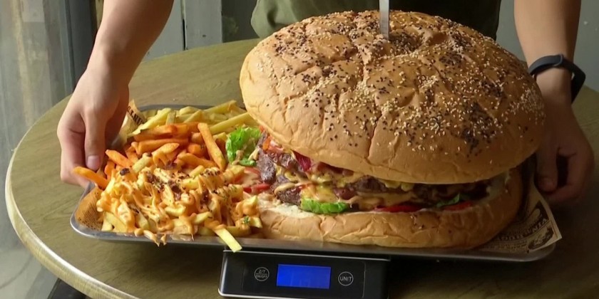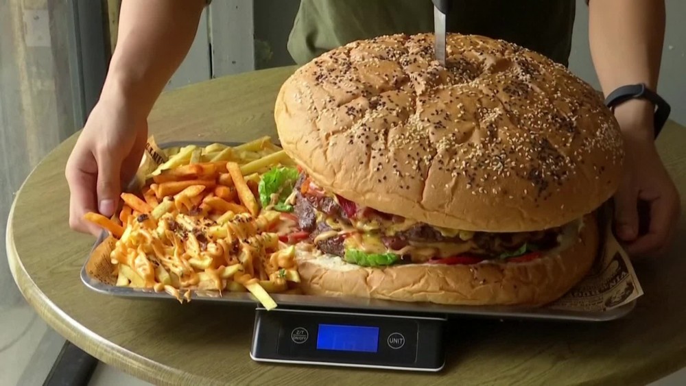 Chris Steaks and Burgers of Bangkok is serving it up to customers as a challenge, promising a 10,000 Baht prize for those who can finish the biggest burger within 9 minutes. the burger’s weight is around six kilograms, composed of 10,000 calories, covered in fried onion rings, layers of bacon, and mayonnaise. Restaurant owner claims it is the biggest burger in Thailand, and makes the effort to warn customers not to choke on it amid the time-constrained eating frenzy.