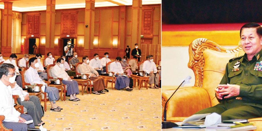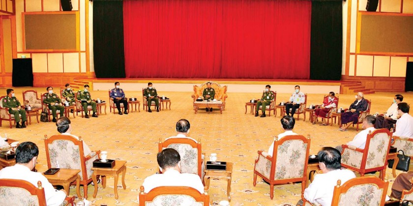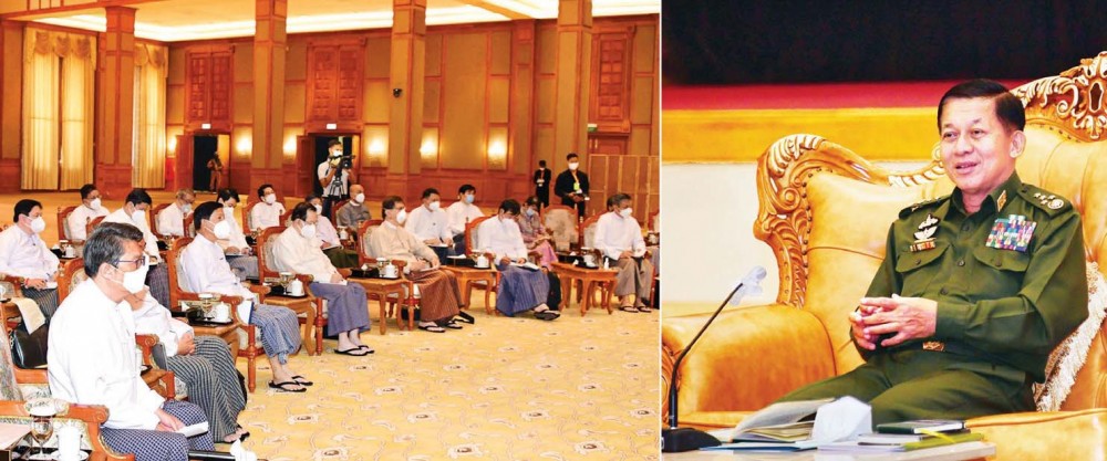 In the meeting at the Presidential Palace in Nay Pyi Taw, the Senior General stressed a series of matters including no restrictions for businesses during the state of emergency period, acceleration of COVID-19 prevention, control and treatment, continuation of international relations and implementation of the policies, COVID-19 impacts on the socioeconomic life of people, resumption of businesses including garment industry in line with COVID-19 guidelines, actions against the travelers who break the COVID-19 rules, export of quality products and local tourism plan.