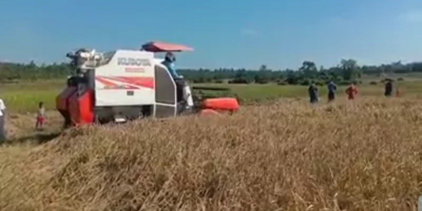 Sin ThuKha monsoon Paddy strain was harvested by heavy machineries at the paddy field of NaungKaMyaing model village in Hpa-An.
