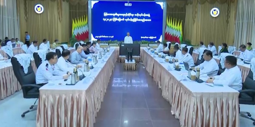 Chairman of the Myanmar Special Economic Zone Central Working Body Union Minister U Aung Naing Oo addressed the Central Working Body meeting 4/2023 at the Ministry of Commerce in Nay Pyi Taw.