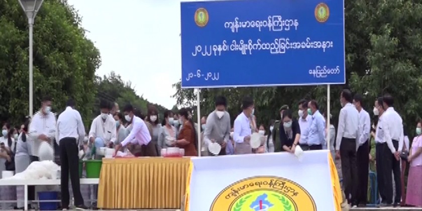 First, Union Minister Dr. ThetKhaing Win and Chairman of the Nay Pyi Taw Council Dr. MaungMaungNaing released fish hatchlings into the lake. Also, Deputy Minister Dr. Aye Tun and Colonel Min Naung, member of the Nay Pyi Taw Council, the directors-general, the deputy directors-general and departmental staff released 10,000 golden sturgeon fingerlings and 10,000 Rohu fingerlings. In the National Herbal Park, Union Minister Dr. ThetKhaing Win, Dr. MaungMaungNaing, Dr. Aye Tun, many other officials and departmental personnel planted saplings including Tharaphi, Magnolia, Ceylon ironwood saplings, Sandalwood, Bay leaf and Gardenia. After the ceremony, the Union Minister and officials viewed the cultivation of the herbal plants.