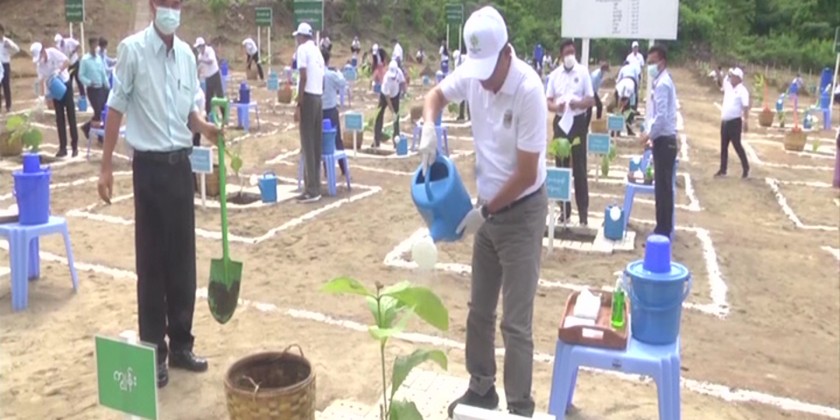 Ministry of Agriculture, Livestock and Irrigation held a monsoon tree-planting and fingerling-adding ceremony near the Paunglaung Reservoir in Zeyathiri Township.