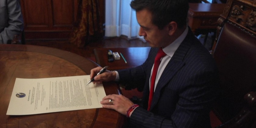 Ecuador's President Daniel Noboa met the Directors of the Inter-American Press Association and signed a statement to guarantee freedom of the press.