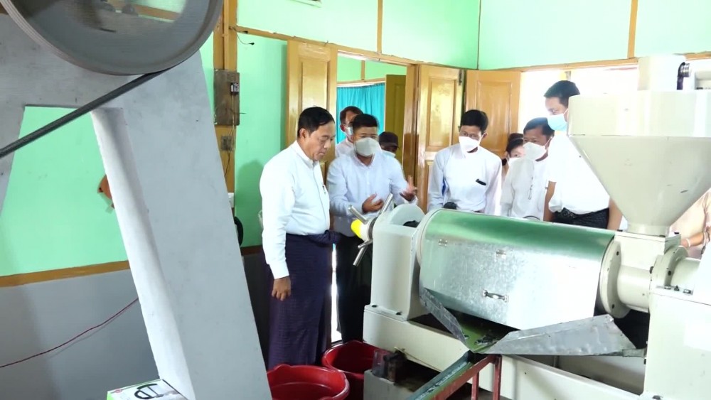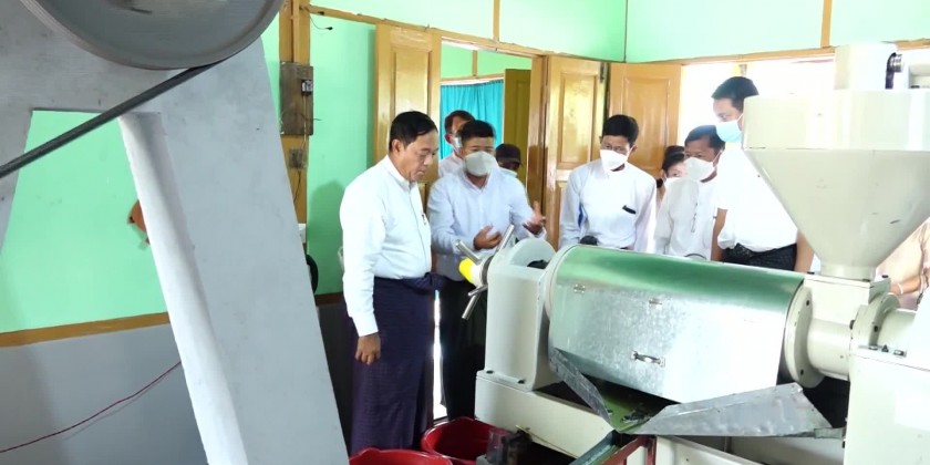 Union Minister for Cooperatives and Rural Development U Hla Moe together with officials inspected the edible oil mill owned by Cooperative Society of Kyauk Sein Agriculture and General Business Enterprise in Phyote Khwe village-tract in Pobba Thiri Township, Nay Pyi Taw Council Area on Wednesday.