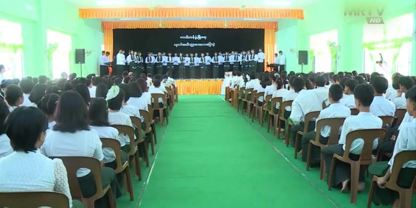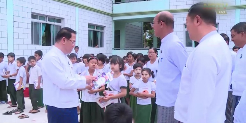 Afterward, the school principal Daw Thet Thet Thin accepted the books and journals for the school library donated by the Union Minister U Maung Maung Ohn and the sports materials donated by the Deputy Minister for Sports and Youth Affairs U Myo Hlaing.