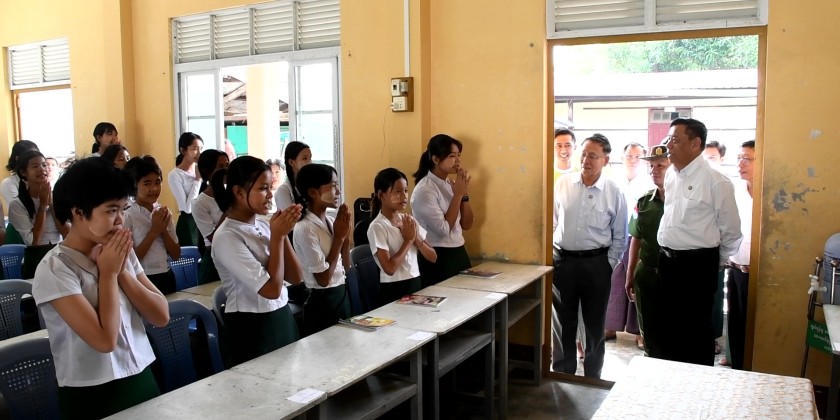 Tanintharyi Region Chief Minister U Myat Ko, along with the Region ministers and relevant officials, visited and observed the ongoing Basic Education Teacher Diploma Course on Education and Teaching Methods at the High School in Myeik Township on April 23.