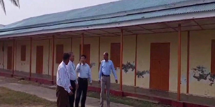 Union Minister for Education Dr Nyunt Pe together with Deputy Minister Dr Moe Zaw Tun, Directors-General from the Ministries of Education and Construction and officials visited the Sittwe University on Sunday, and met with the Rector, Pro-rector, head of Rakhine State Education department and officials.
