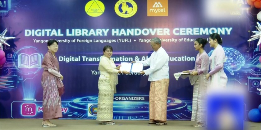 On the same day, Union Minister Dr Chaw Chaw Sein attended the ceremony to handover the Digital Libraries to University of Foreign Languages (Yangon) and Yangon University of Education.